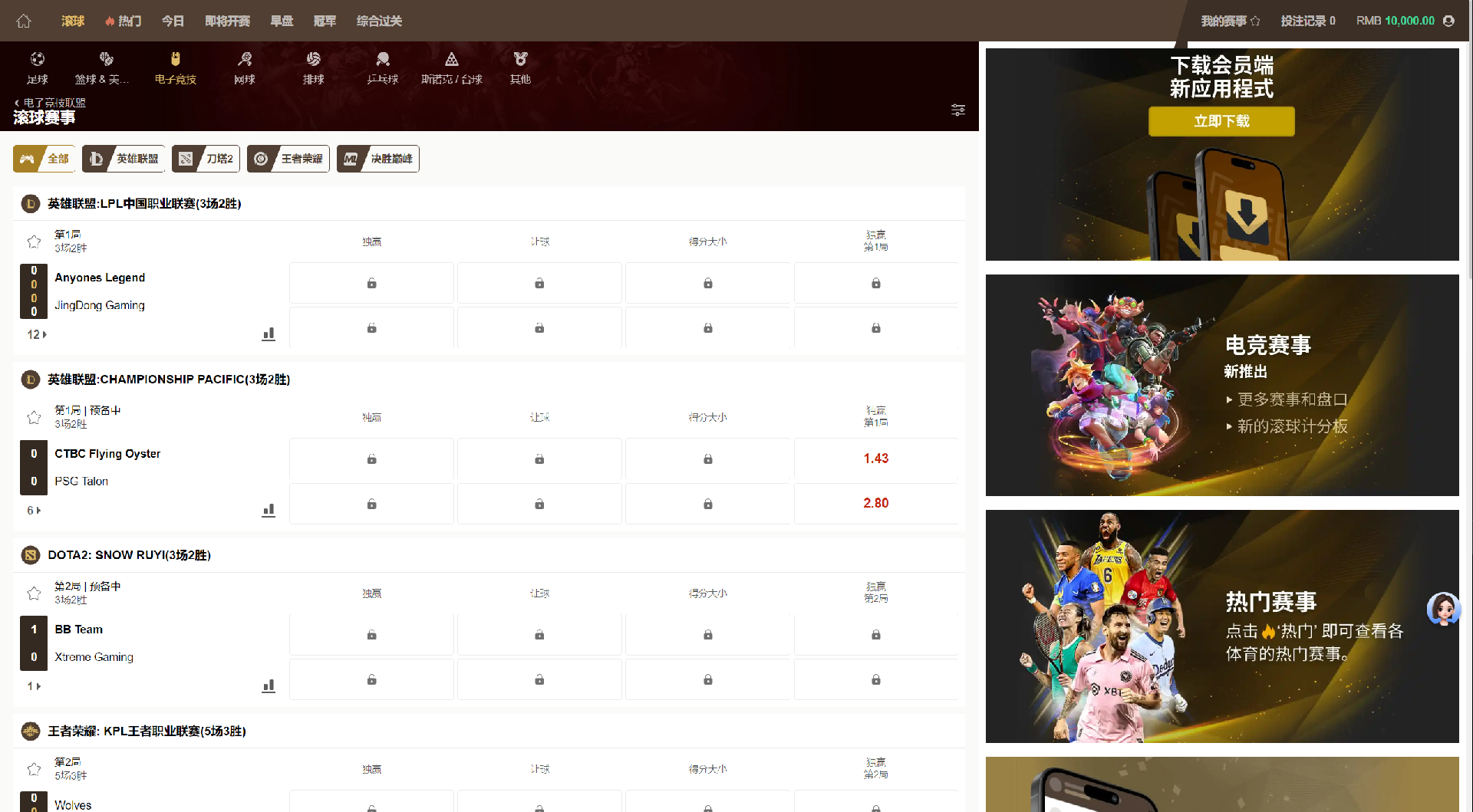 电竞项目全面支持(英雄联盟、刀塔2、王者荣耀、CS:GO等)