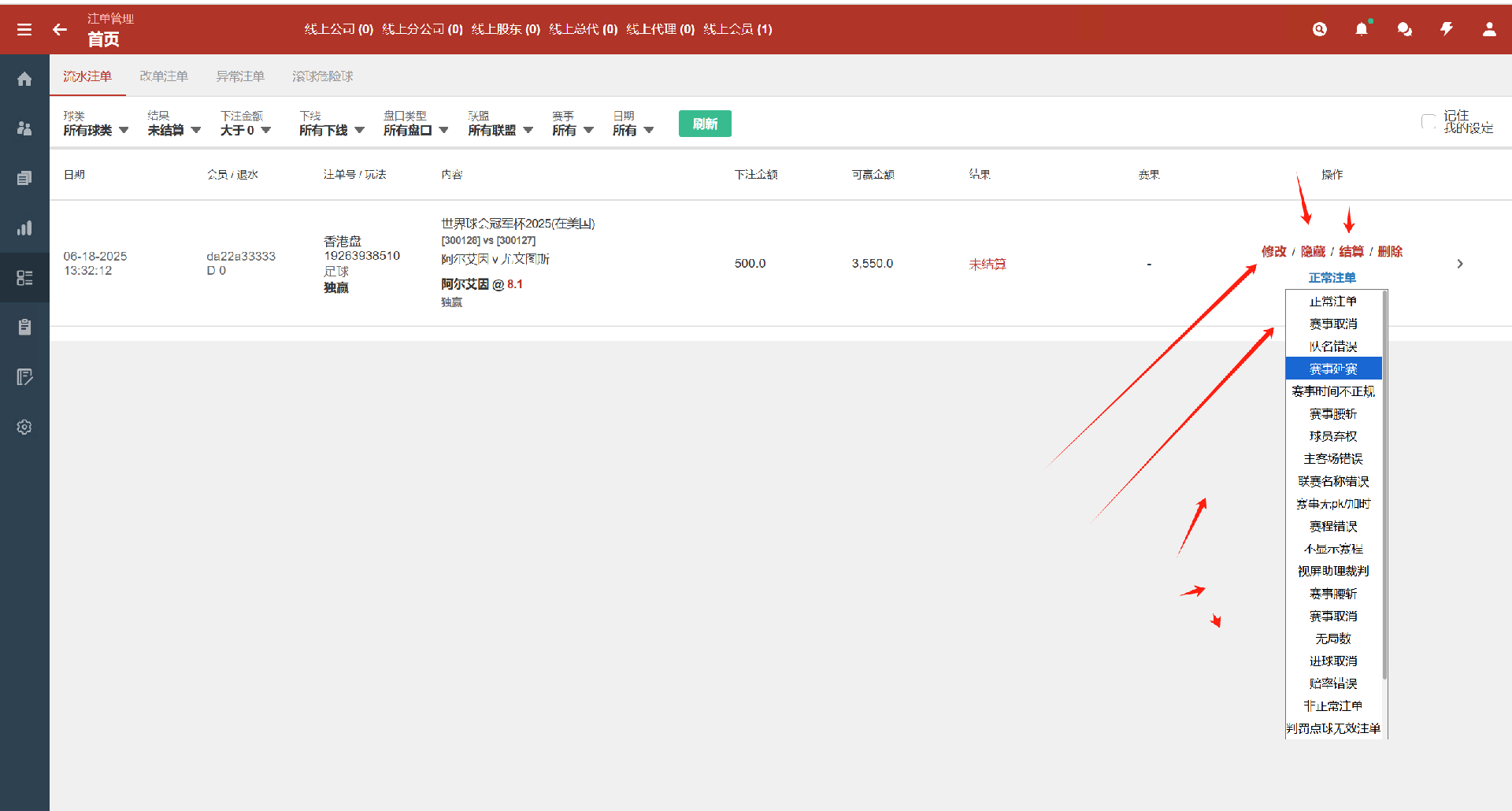 信用盘口,无需买分抽水,零手续费更省成本 支持注单修改、对调、作废,灵活可控 支持实时赛事数据、视频直播与下注操作 多终端自适应,完美兼容PC、手机端使用新增世界杯、热门联赛、梦幻联赛等主流赛事入口