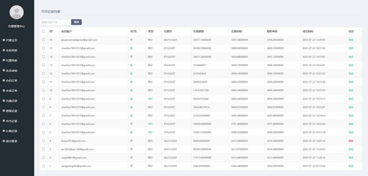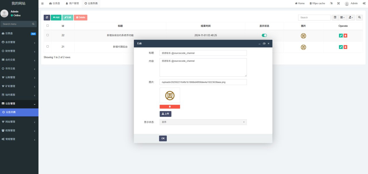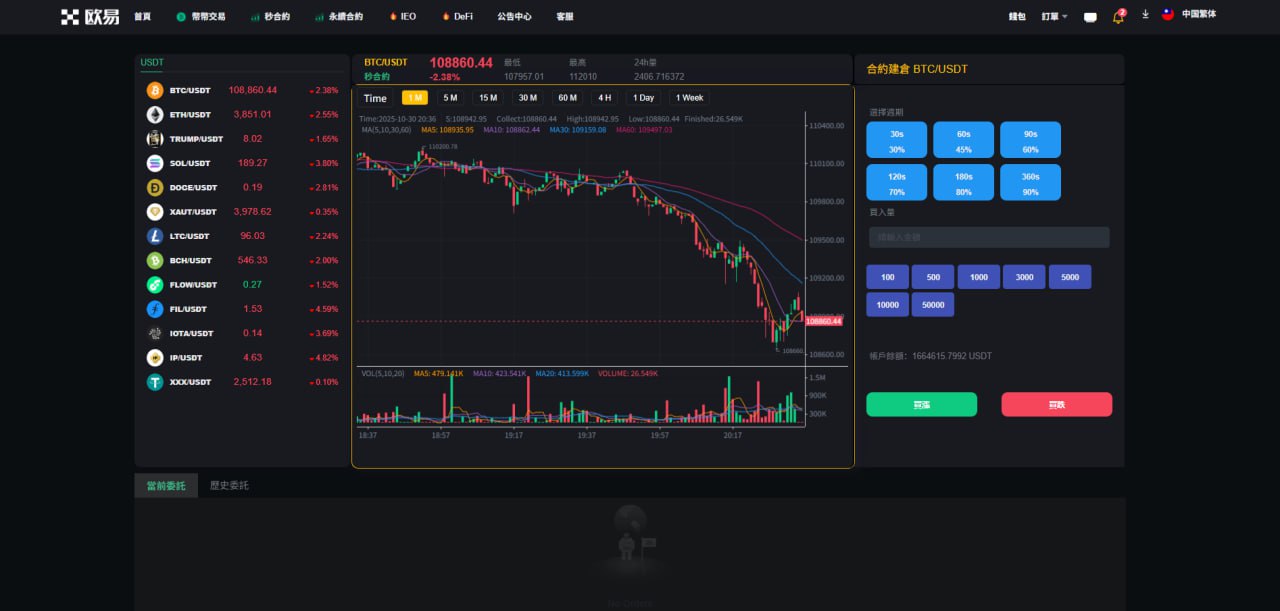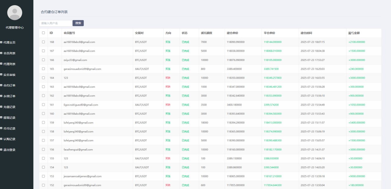站长开发持续更新种,支持币币交易,秒合约交易,永续合约交易,发币自己的币种,控制币种涨跌走势,用户订单控制,包含代理后台,购买可享受免费更新,秒合约 永续合约 可发行自己代币控制涨跌 含代理后台 非常完美的一套