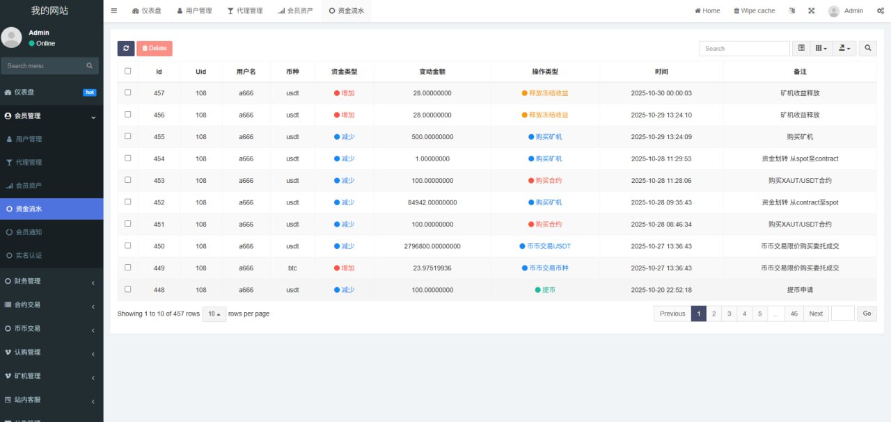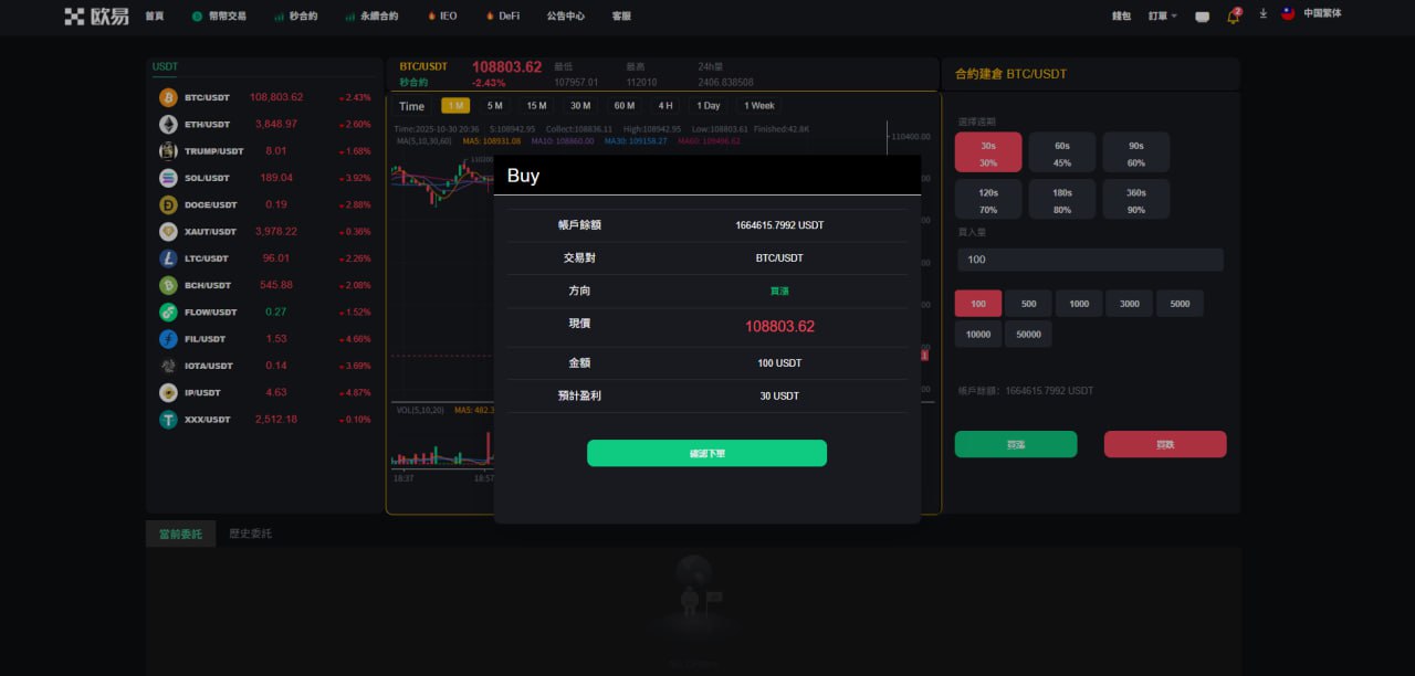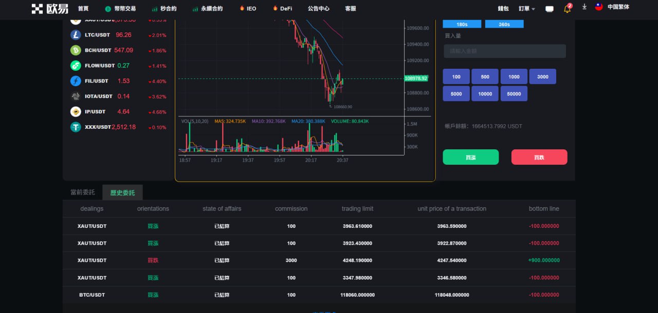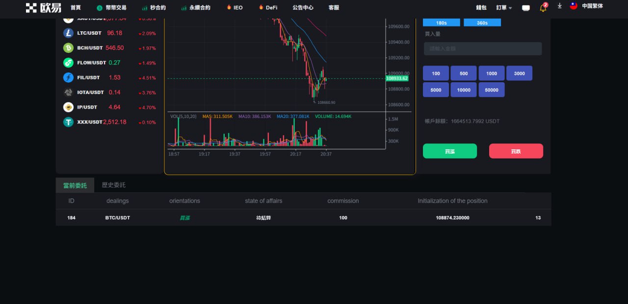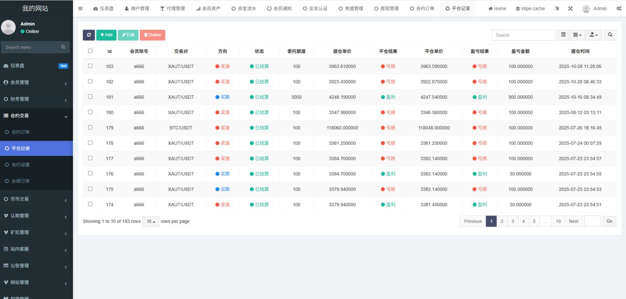 站长开发持续更新种,支持币币交易,秒合约交易,永续合约交易,发币自己的币种,控制币种涨跌走势,用户订单控制,包含代理后台,购买可享受免费更新,秒合约 永续合约 可发行自己代币控制涨跌 含代理后台 非常完美的一套