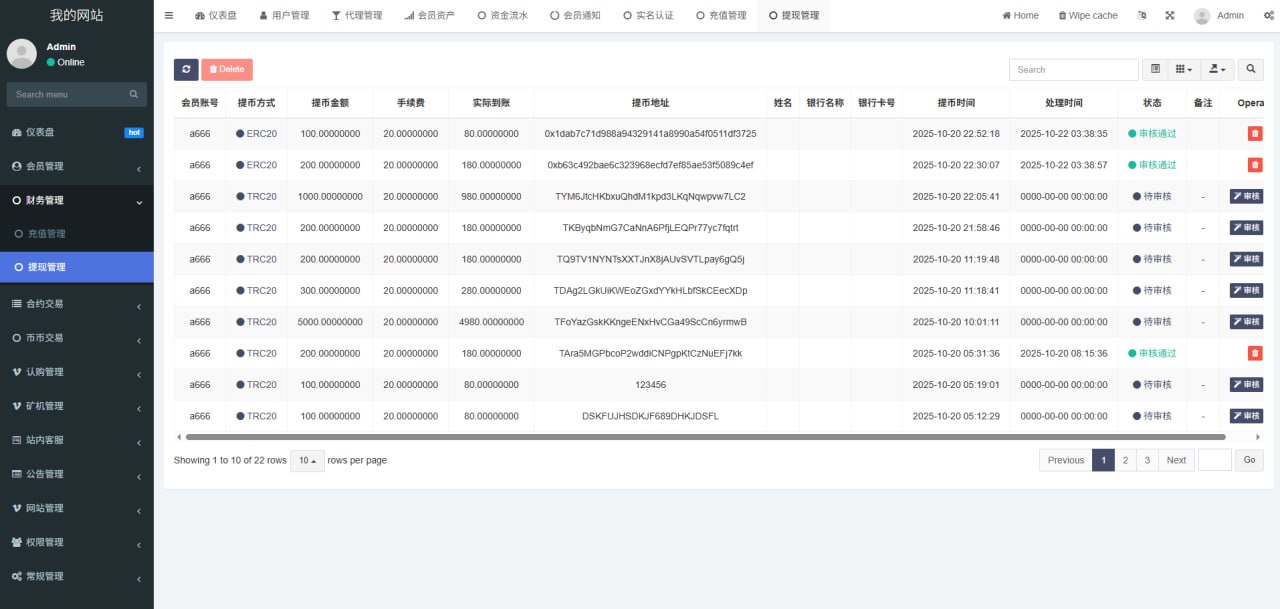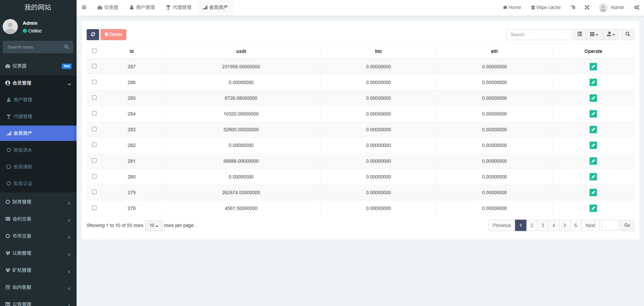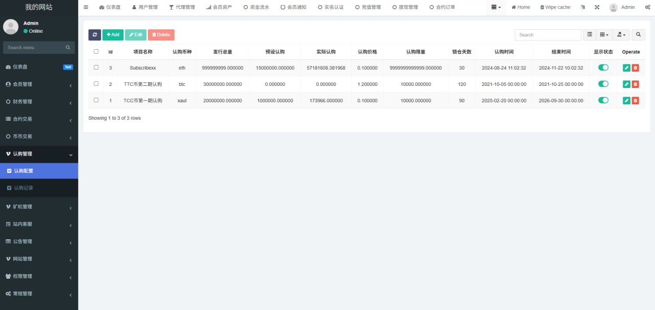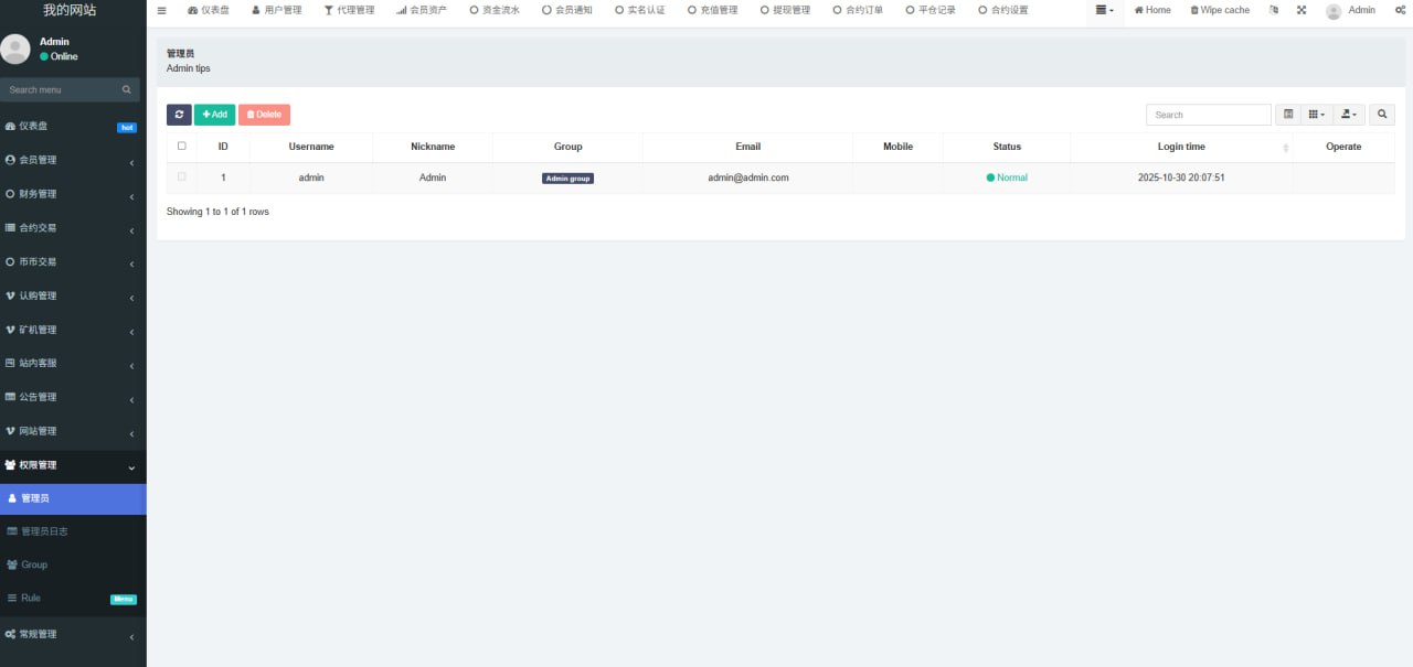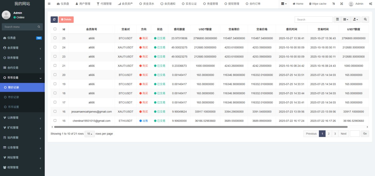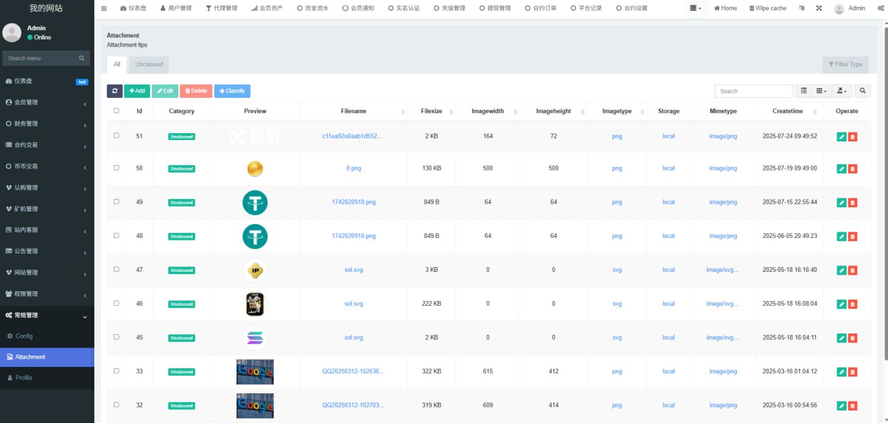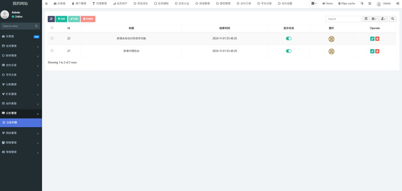 1.网站管理(网站名称 网站logo 客服链接 币种市场 币种配置)