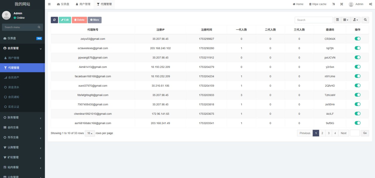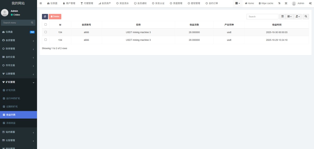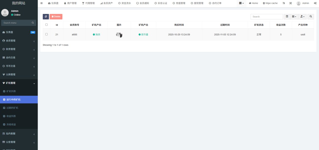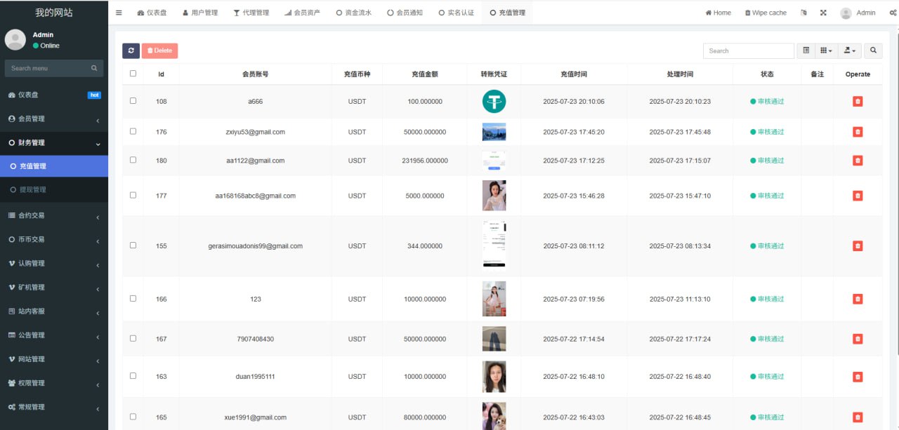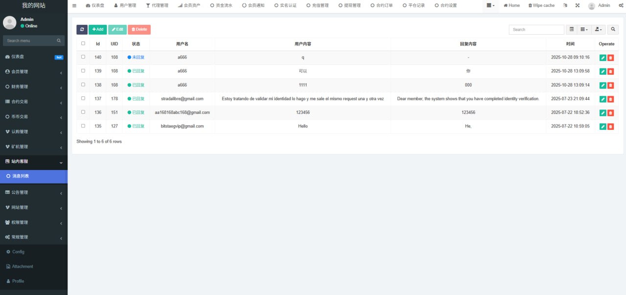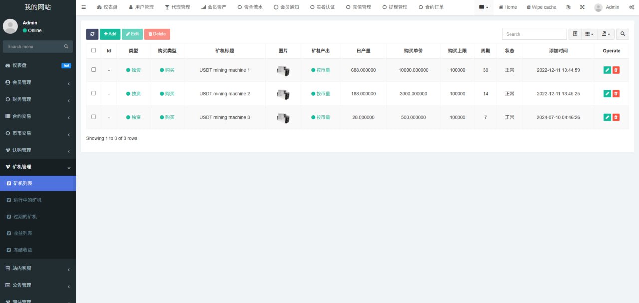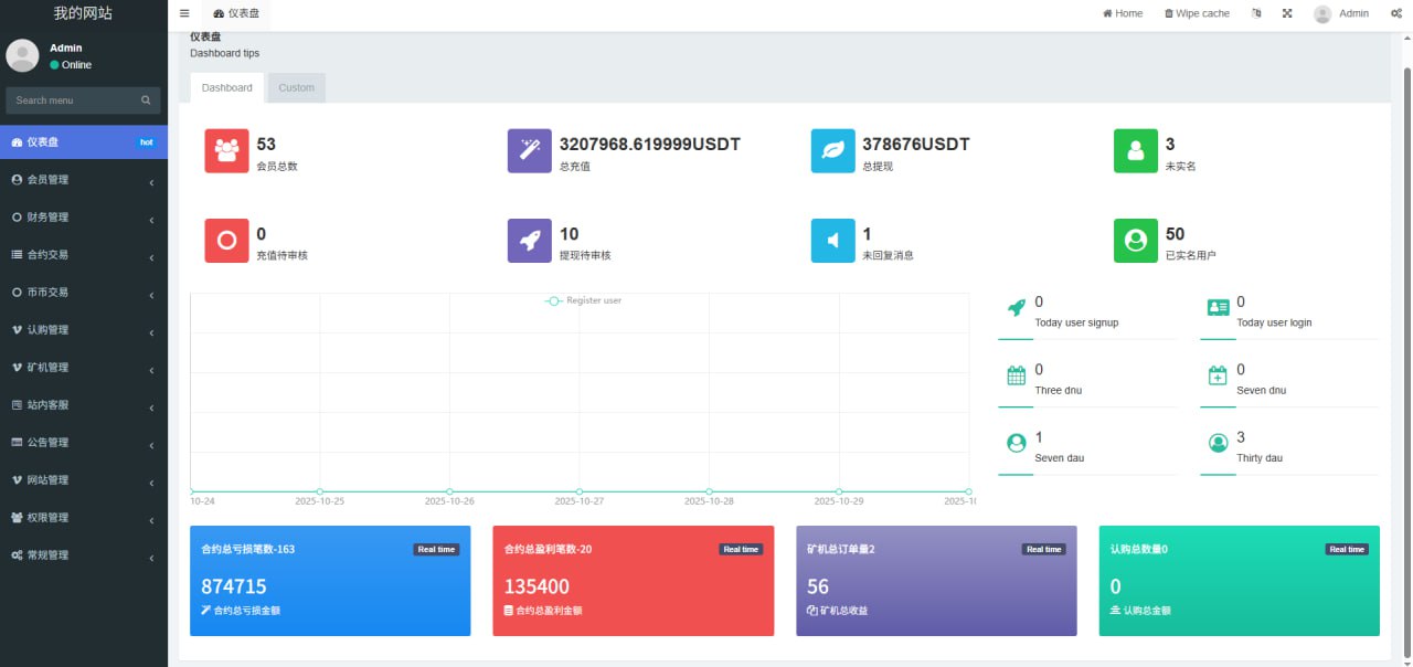1.网站管理(网站名称 网站logo 客服链接 币种市场 币种配置)
