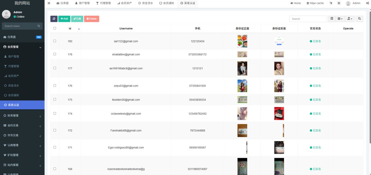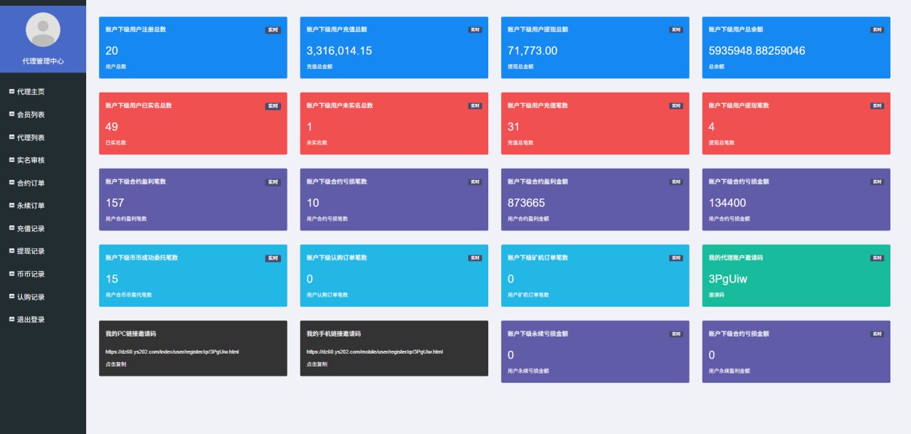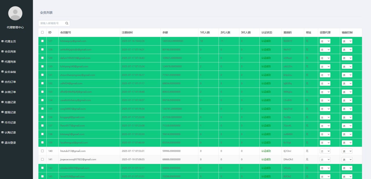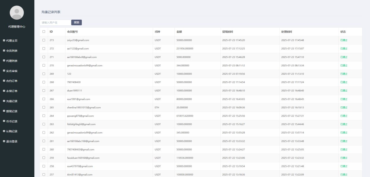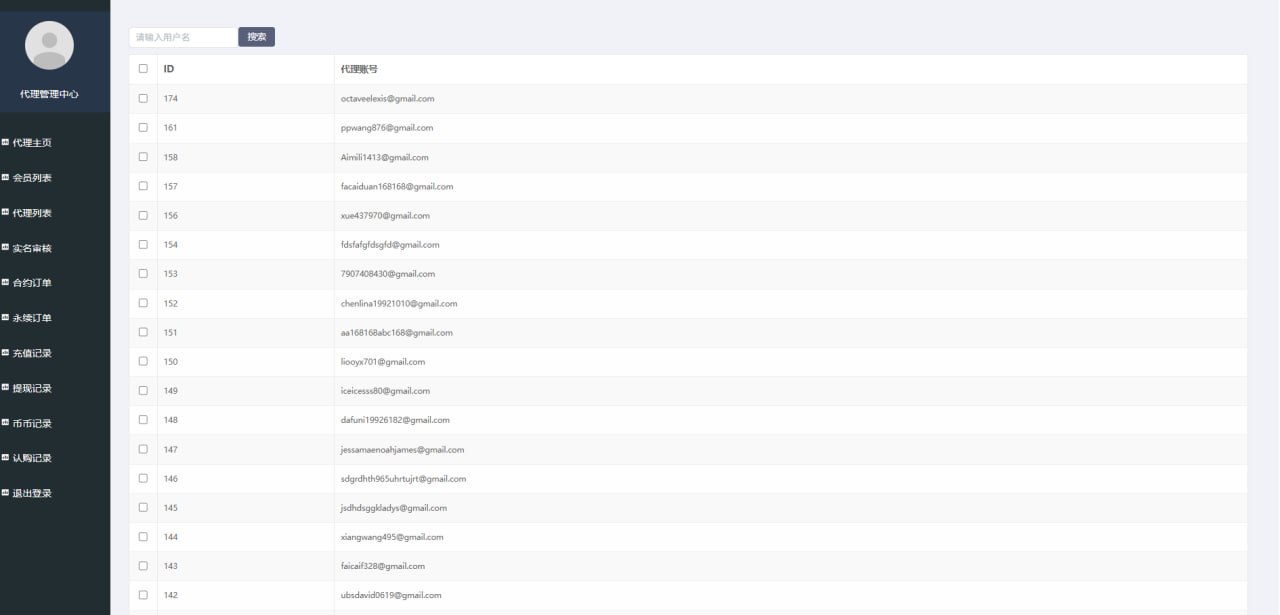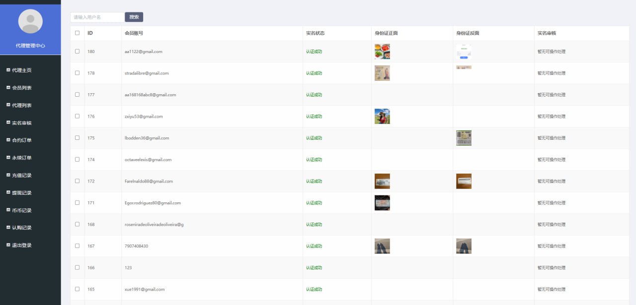 2.用户管理(用户密码修改、实名认证管理、资金流水,会员通知,代理设置)