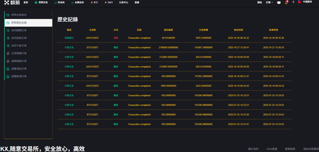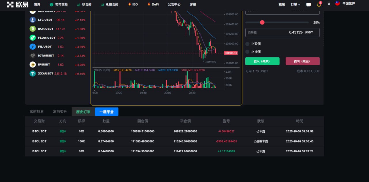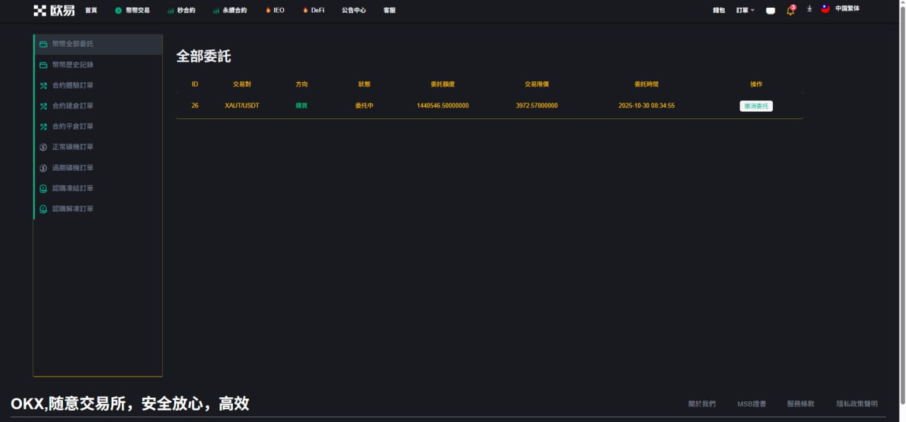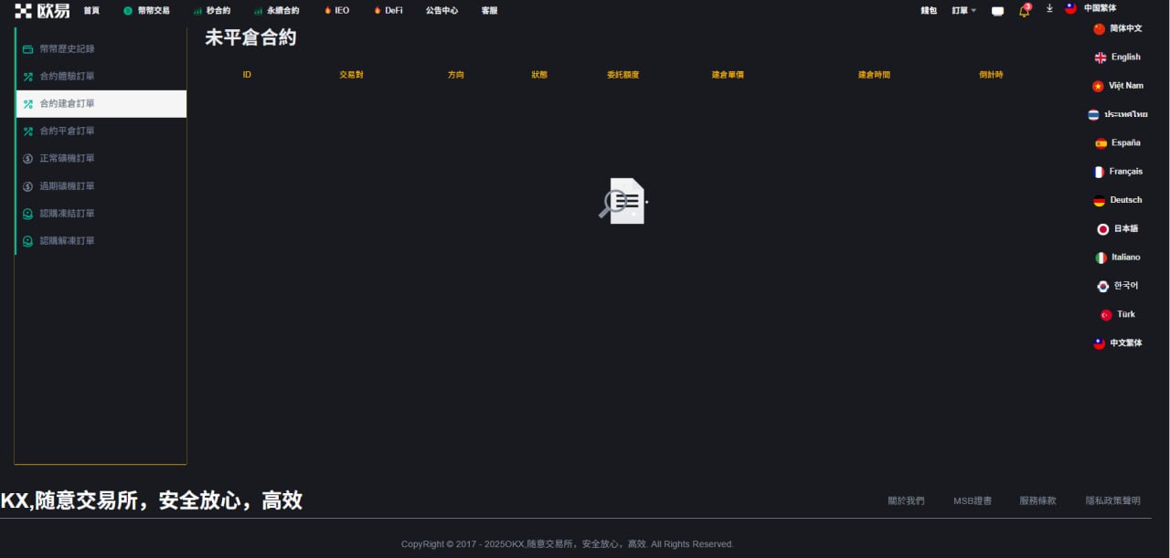 4.和约管理(交易订单 平仓记录);
