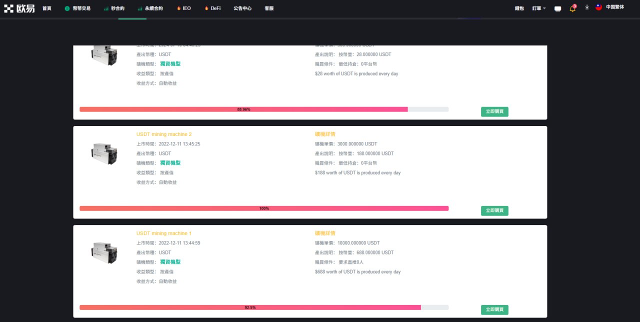 8 K机管理(产品列表 运行列表 过期列表 冻结列表 收益列表);