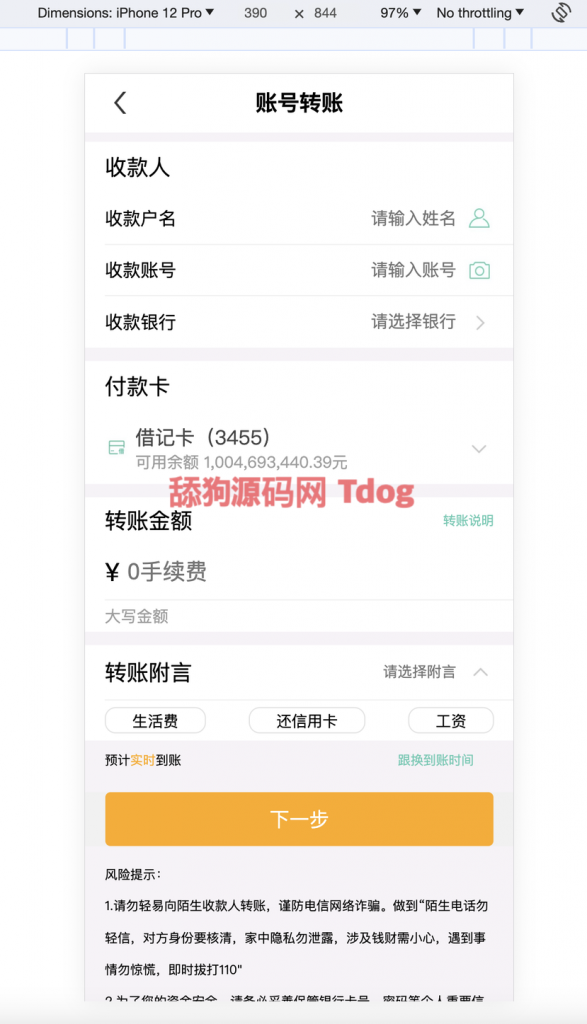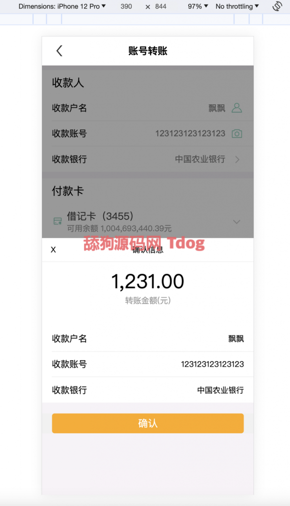 新做仿农行app 可修改用户名称 余额 有转账功能以及转账记录 1:1仿农行app. 前端混编 后台fastadmin 可二开功能