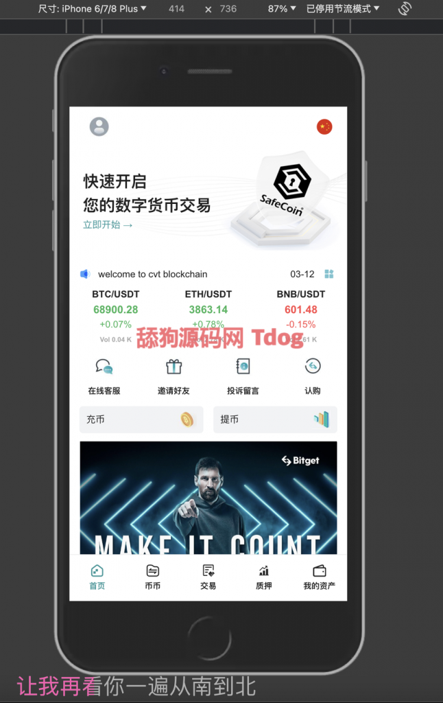 秒合约、合约、法币、币币交易、平台币、矿机等功能均完美无缺,代码全开源没有任何加密 无任何后门 手机端
